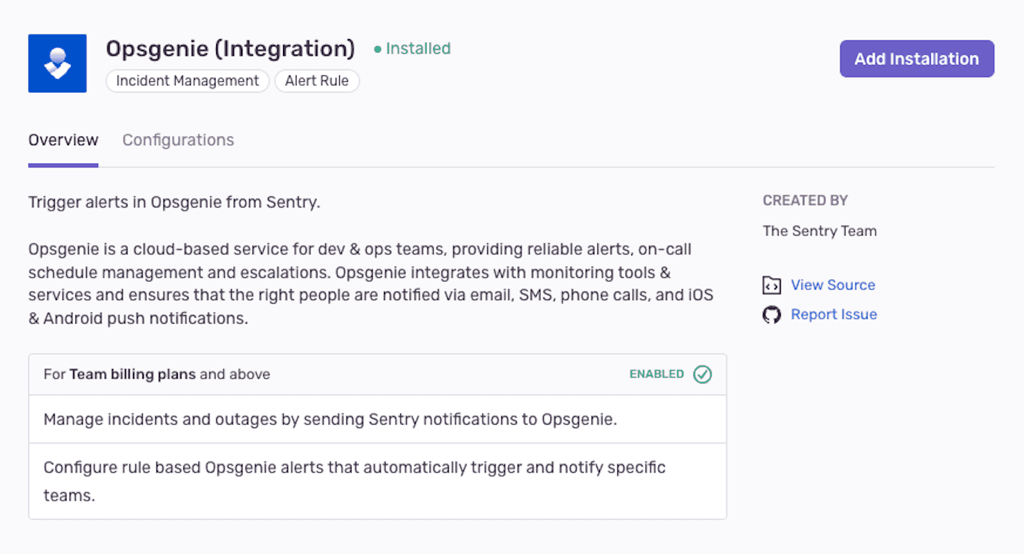 Never miss a critical incident by integrating Opsgenie with Sentry. You can now connect your Sentry organization to one or more Opsgenie accounts, and configure alerts in Sentry to notify teams in Opsgenie. Check out the docs to get started.