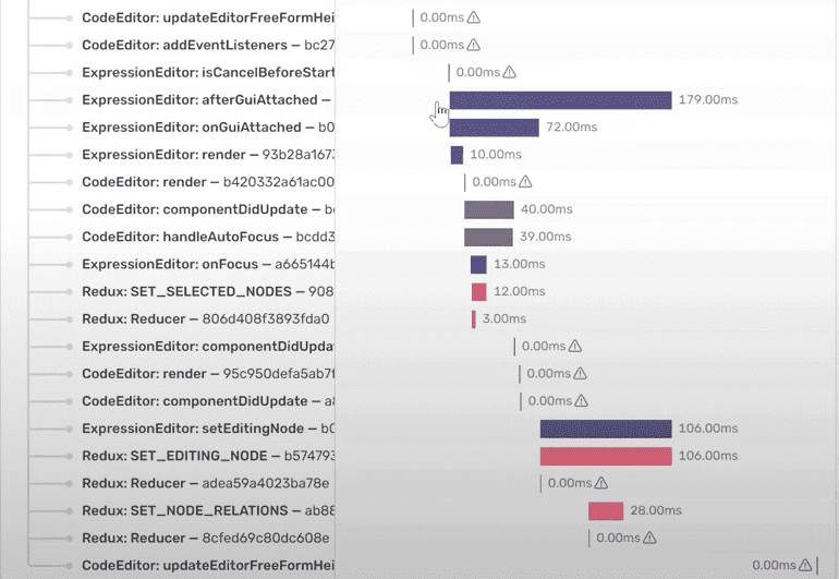 Users rely on Causal’s formula editor to calculate different revenue variables, which often involves formulas with complex values. By combining automatic and custom instrumentation around react components, the team is able to see how fast or slow that editor is performing and investigate any bottlenecks. A recent example of this shows how Sentry helped them identify a drop in performance with a particular lifecycle method being called, dive deeper into what happened, and resolve it: