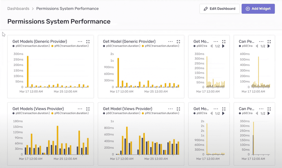 On the backend, they can effectively monitor their middleware, and the Sentry Express SDK gives them deeper insights into individual transactions when they need it. For example, the team recently built an entirely new system that changed how they approached permissions. They needed to get a sense of how it was performing since it’s used in almost every request on the backend and could easily become a bottleneck for subsequent requests.