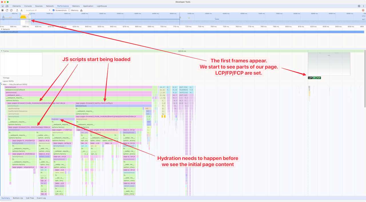 By now, we should have a solid understanding of how RSCs work, how Next.js handles their rendering, and how all the pieces fit together. In this section, we’ll zoom in on what exactly happens when we visit an RSC page in the browser.