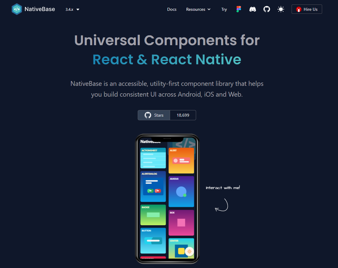 NativeBase has more than 18.4K stars on GitHub and 70k+ weekly NPM downloads.