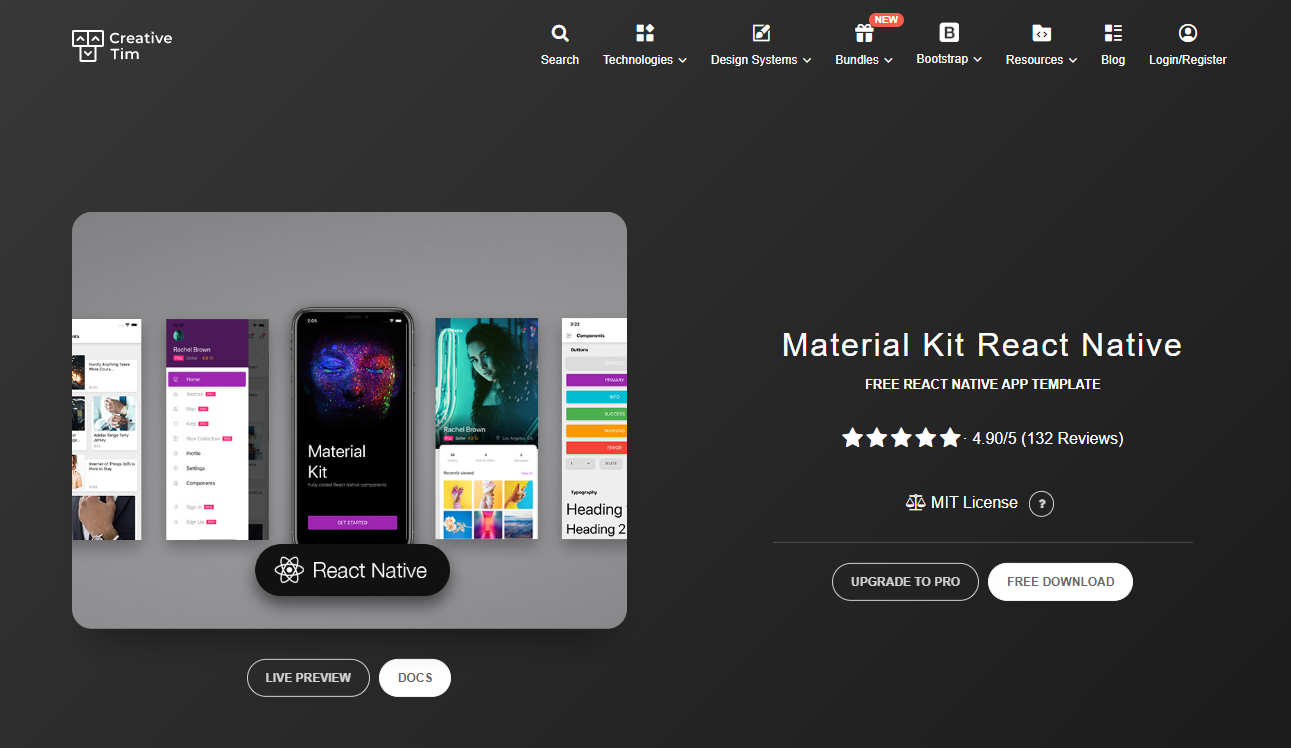 GitHub: https://github.com/creativetimofficial/material-kit-react-native
