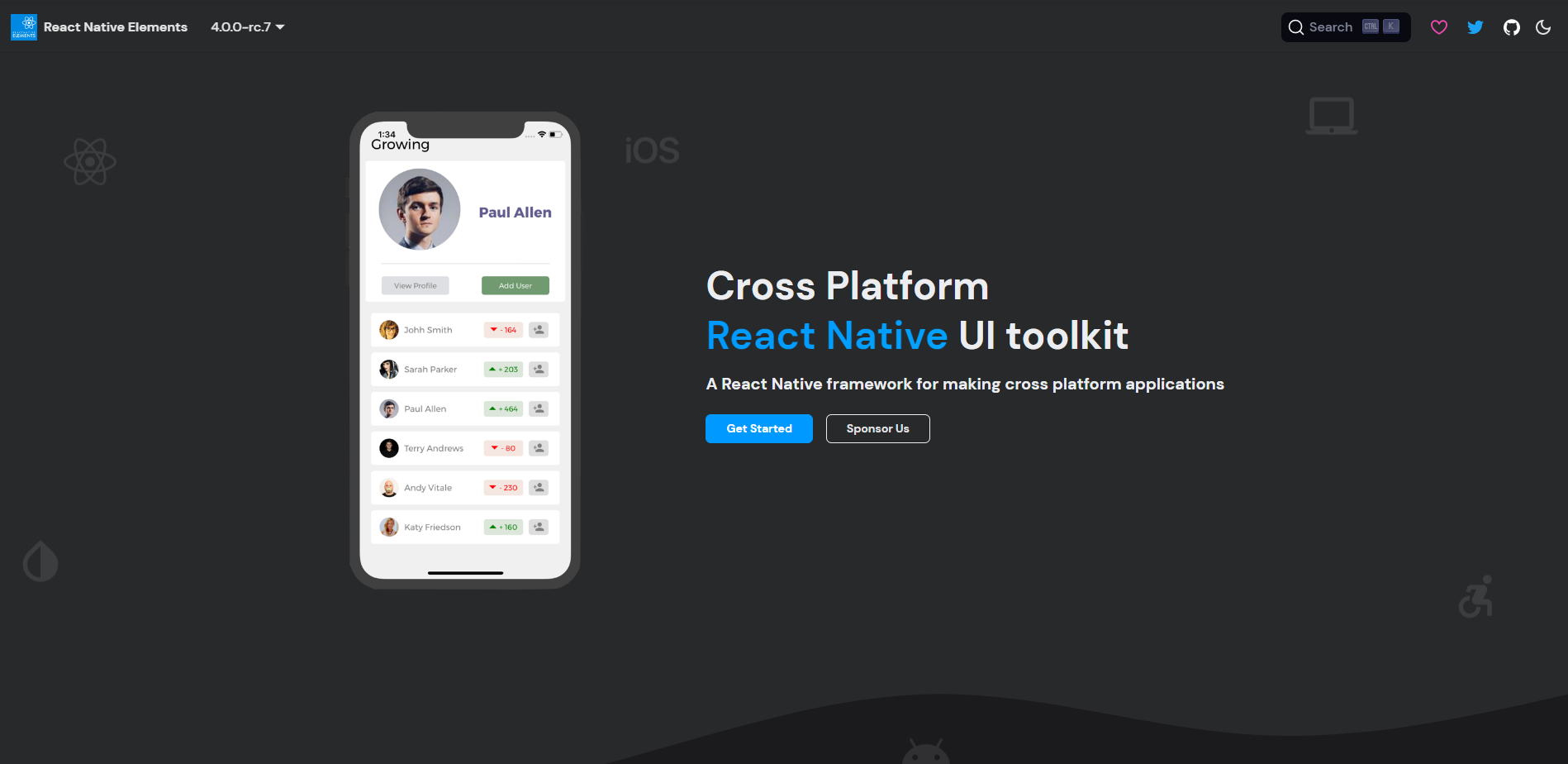 GitHub: https://github.com/react-native-elements/react-native-elements