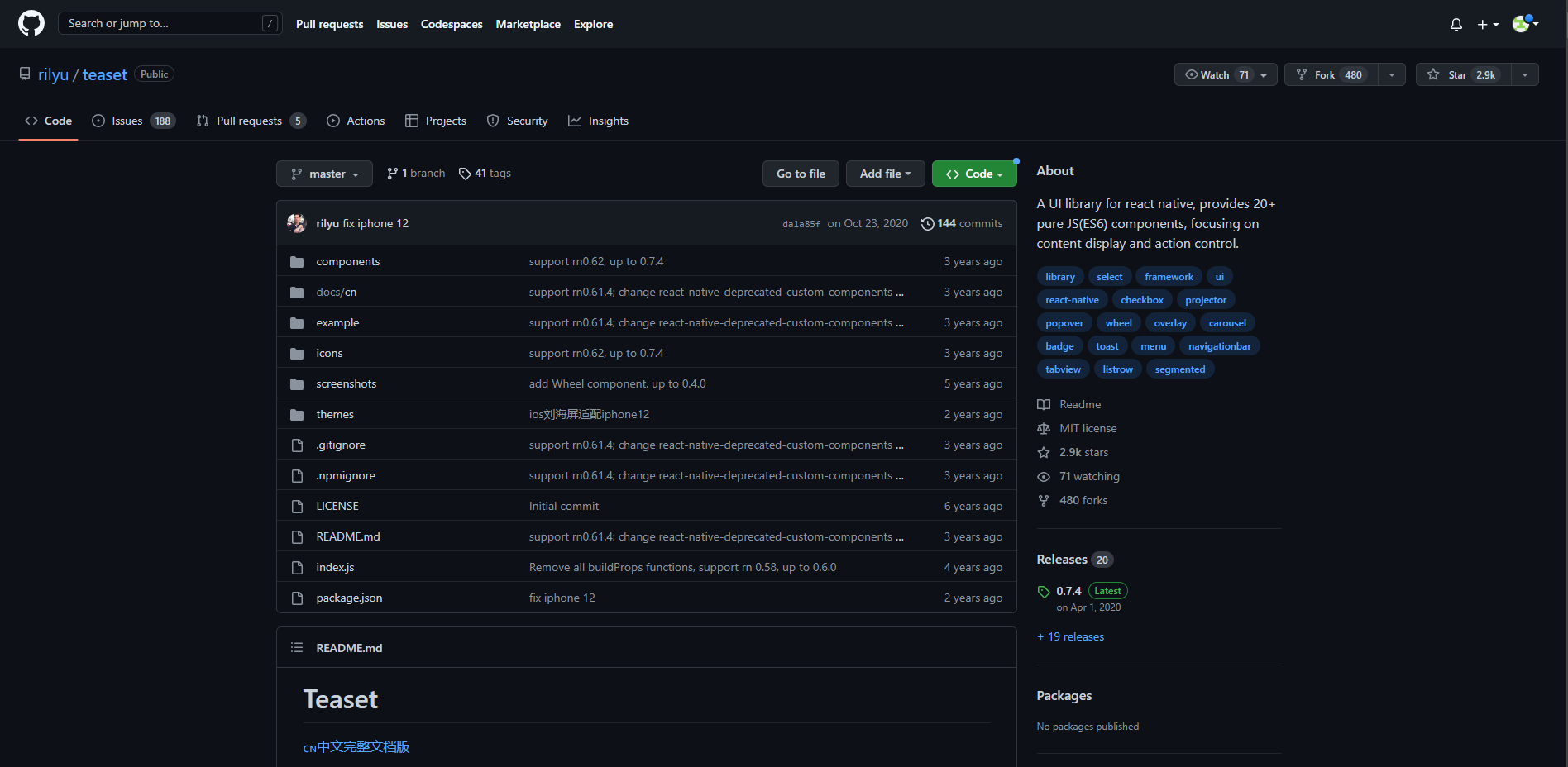 Teaset has 2.9K+ stars on GitHub and around 200 weekly NPM downloads.