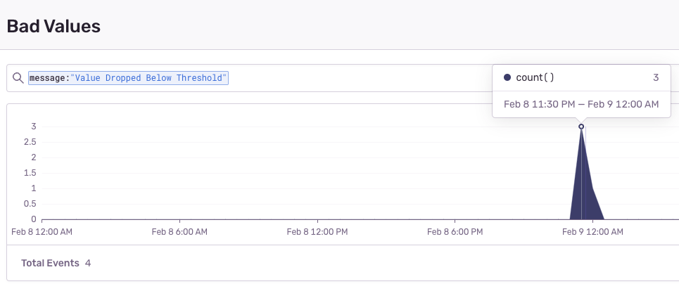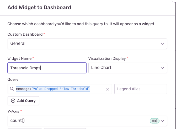 Now the magic happens 🪄! Click “Add to Dashboard” after saving your changes and you can view the number of times your data dropped below the threshold.