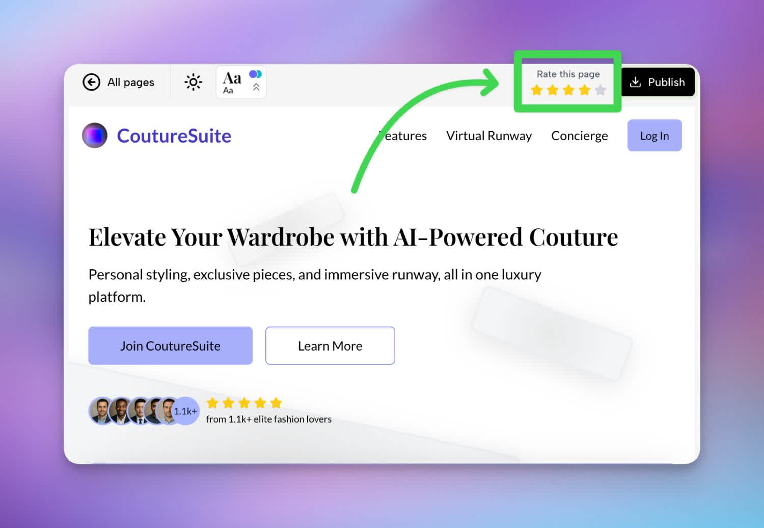 Rating widget added in PageAI’s top bar.