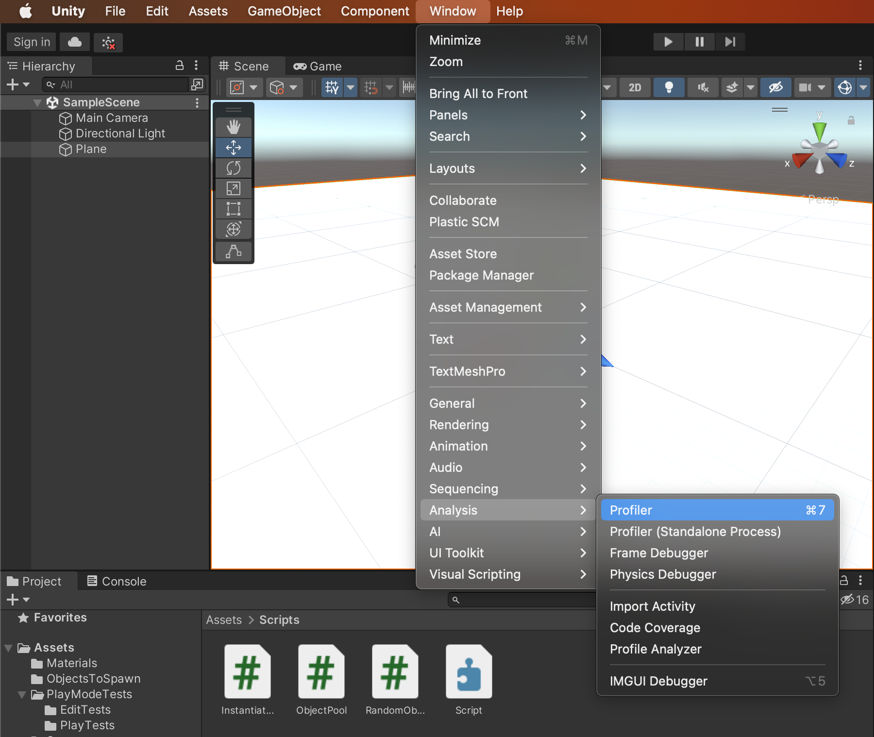 Unity provides another tool called "Unity Profiler", which is mostly an underrated utility among many developers. You can use it to derive performance metrics of a Unity application, including frame rate, memory usage, rendering statistics, and many more.