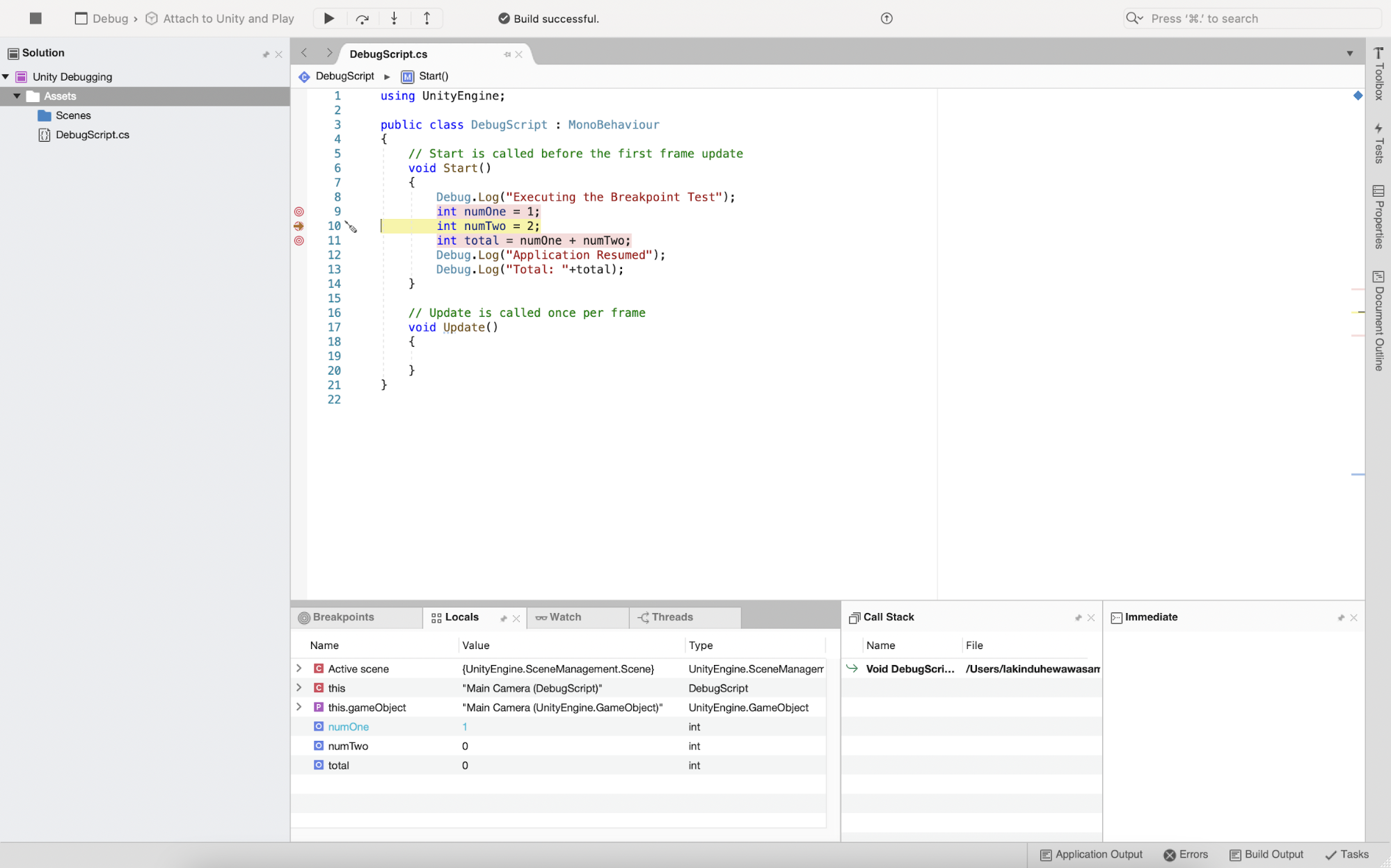 However, reading a codebase line by line and identifying logical errors is cumbersome. Moreover, when it comes to Unity application development, this becomes further complex because most of your code blocks are attached to game objects, and those trigger various game actions. Therefore, you'll have to find a systematic way to debug and carry out fixes faster and easier. Fortunately, Unity has provided many helpful debugging tools that make debugging a piece of cake! Apart from that, you're free to utilize the comprehensive debugging tools offered by Visual Studio.