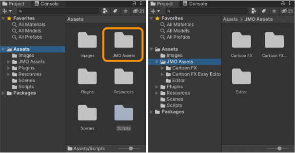 You will find a new folder titled “JMO Assets” in your assets folder, with 3 folders inside.