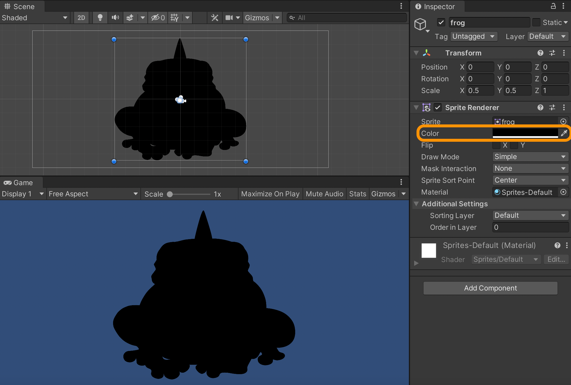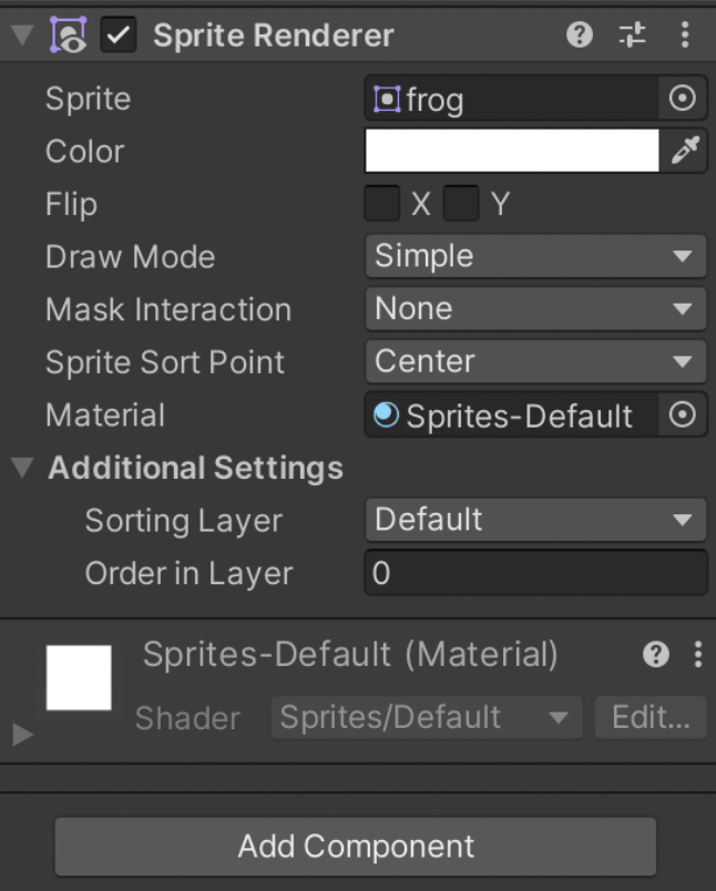 Let’s define the main properties of the sprite renderer component: