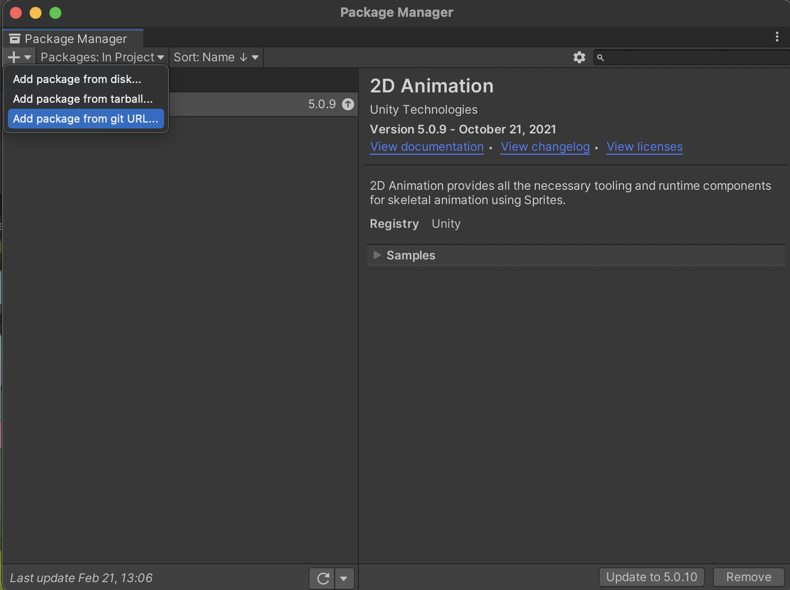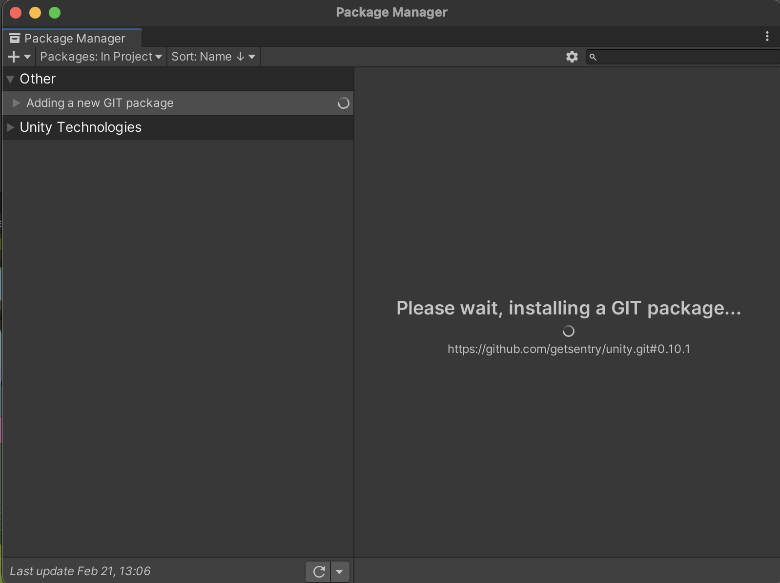 https://github.com/getsentry/unity.git#0.10.1 You can get the latest URL from the “Install” section in Sentry’s docs (https://docs.sentry.io/platforms/unity/). This will install the package.