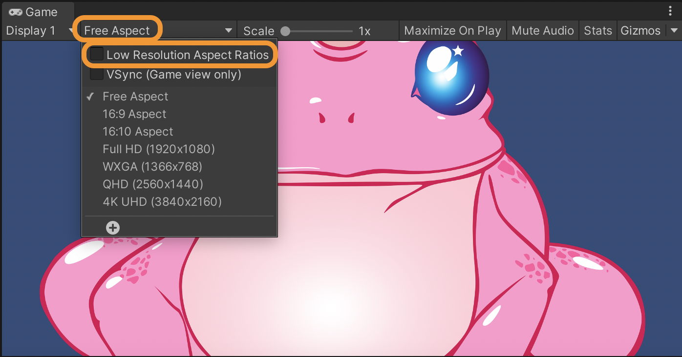 Located just to the right of the “Scene” tab, the “Game” tab opens a window of what the player will see when they play your game.