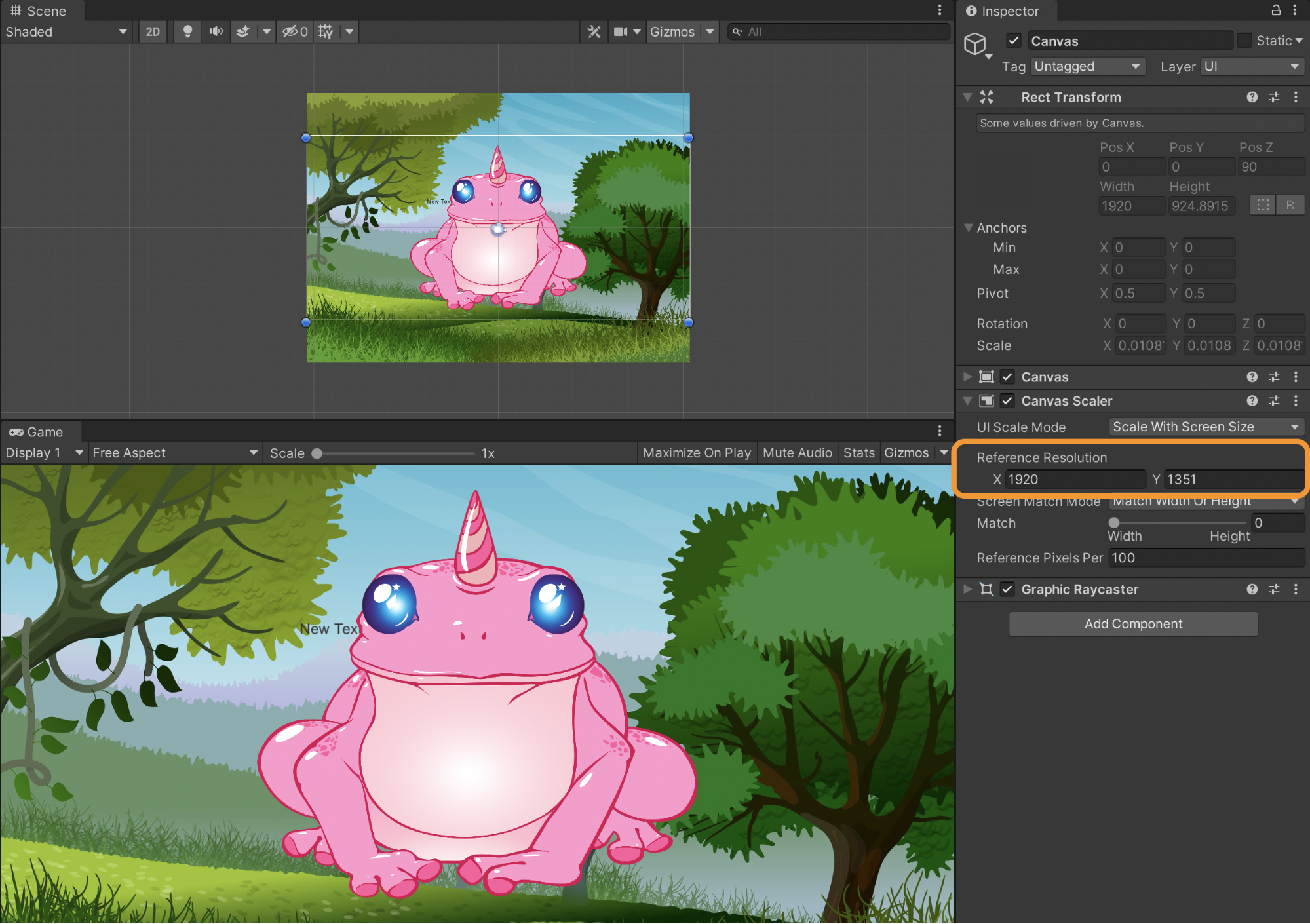 We also need to choose a reference resolution. This is self explanatory. I normally choose the size of the background image so the image won’t be crushed. We will change this later after we add a background image.