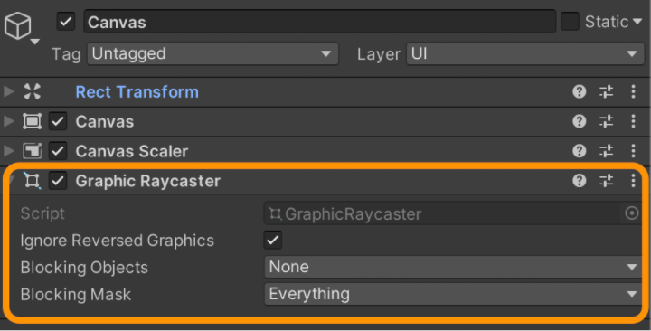 Additional Settings: If you use layers, you can sort the GameObject into a specific layer, as well as its order in that layer. For example, you can make a background layer that will be the background image of your game. Then the UI layer will be for the buttons and menus.