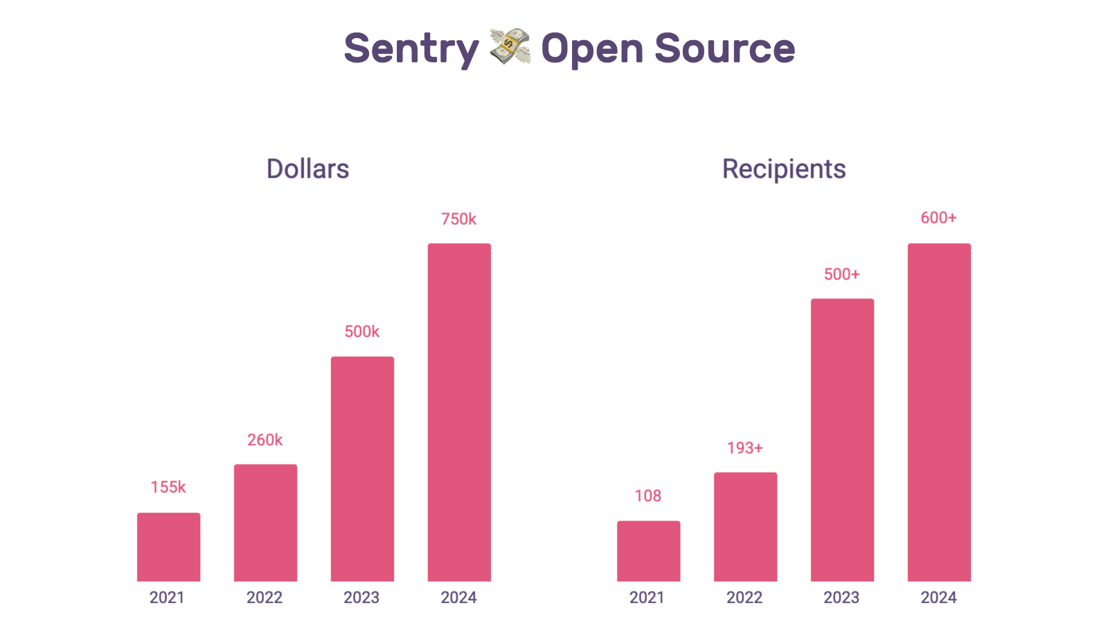 One way or another, we’re proud at Sentry to run our own Open Source funding program for the fourth year in a row and to continue driving this wider conversation. We’re grateful to all of you maintainers out there, and we invite other companies to join us in paying the maintainers through the Open Source Pledge.